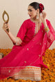 Pink embroidered Kurta with Trousers and dupatta