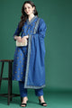 Blue embroidered Kurta with Trousers with dupatta