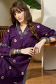 Purple embroidered tunic, has a v neck and three-quarter sleeves