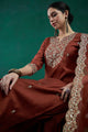 Rust, green & silver toned embroidered Kurta with Trousers with dupatta