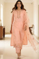 Peach, white and yelllow embroidered Kurta with Trousers and dupatta