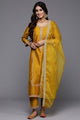 Yellow and white embroidered kurta with trouser with dupatta