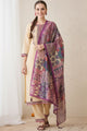 Cream, purple and blue embroidered Kurta with trousers and dupatta