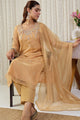 Peach-and white embroidered Kurta with Trousers and dupatta