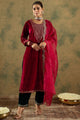 Dhiyona IE Ethnic Motifs Embroidered Regular Velvet Straight Kurta with Trousers & Dupatta