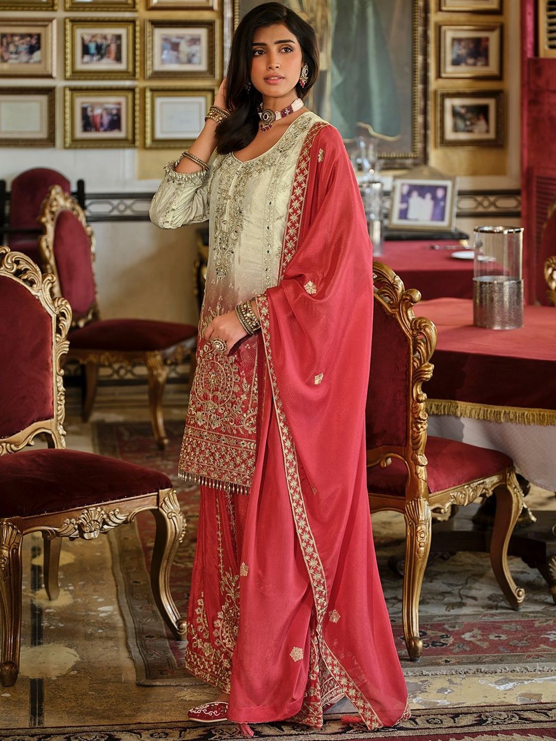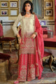 Magenta, pink and off white embroidered kurta with sharara with dupatta