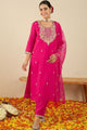 Dhiyona IE Ethnic Motifs Embroidered Round Neck Thread Work Kurta With Trousers & Dupatta