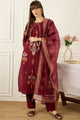 Maroon, red and white embroidered Kurta with Trousers with dupatta