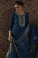 Teal and silver-toned embroidered Kurta with Trousers with dupatta
