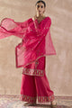Pink, blue and gold-toned embroidered Kurta with Palazzos with dupatta