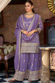 Lavender and gold toned embroidered Kurti with palazzos & dupatta