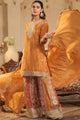 Orange & silver toned embroidered kurta with palazzos & dupatta