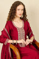 Maroon embroidered Kurta with Trousers and dupatta
