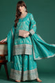 Blue embroidered Kurta with Palazzos with dupatta