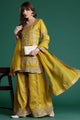Mustard yellow embroidered Kurta with Palazzos with dupatta