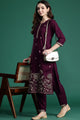 Burgundy embroidered Kurta with Trousers