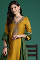 Mustard yellow embroidered Kurta with Trousers with dupatta