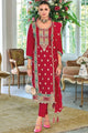 Red, white and blue embroidered Kurta with Trousers with dupatta