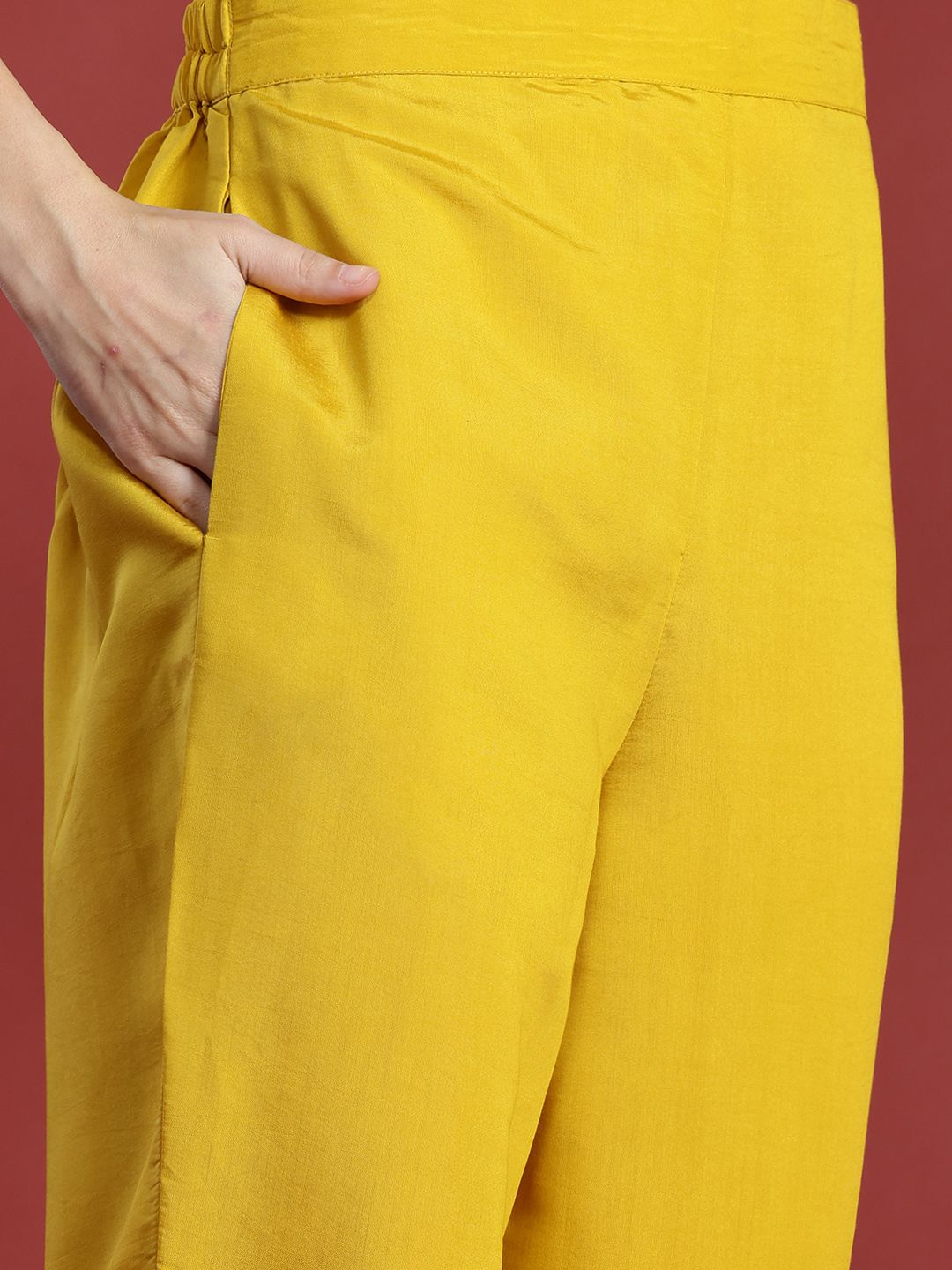Mustard yellow embroidered Kurta with Trousers with dupatta