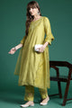 Dhiyona IE Ethnic Motifs Embroidered Sequinned Liva Kurta With Trousers & Dupatta