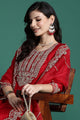Red embroidered Kurta with Trousers with dupatta