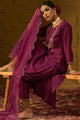 Burgundy & gold-toned yoke design Kurta with Trousers with dupatta