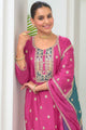 Pink , gold-toned and teal embroidered kurta with trousers and dupatta