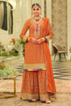 Orange & gold toned embroidered kurta with sharara & dupatta
