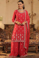 Dhiyona IE Ethnic Motifs Embroidered Straight Chinon Kurta & Palazzos With Dupatta