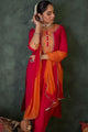 Red, magenta and burgundy embroidered kurta with trouser and dupatta