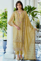 Peach and gold toned embroidered kurta with trousers and dupatta