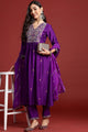 Dhiyona IE Ethnic Motifs Embroidered Thread Work A-Line Kurta With Trouser And Dupatta