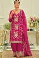 Fuchsia & gold embroidered kurta with patiala & dupatta