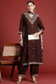 Coffee brown & burgundy embroidered Kurta with Salwar with dupatta
