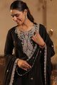 Black, charcoal & gold-toned embroidered Kurta with Sharara & Dupatta