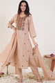 Beige, yellow and pink embroidered kurta with trousers and dupatta