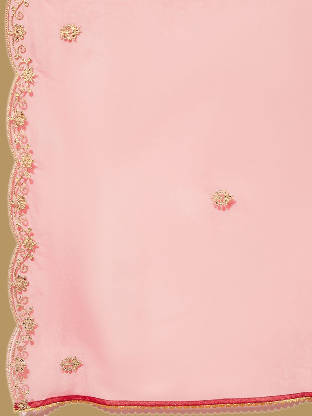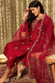 Red, Gold-toned embroidered Kurta with Trousers & dupatta