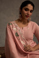 Peach-coloured embroidered Kurta with Trousers with dupatta