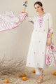 Off white, pink and blue embroidered kurta with trousers and dupatta