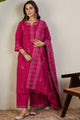 Fuchsia embroidered Kurta with Trousers with dupatta