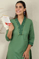 Dhiyona IE Ethnic Motifs Embroidered Thread Work Pure Cotton Kurta With Trousers