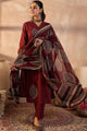 Maroon embroidered kurta with trousers & dupatta