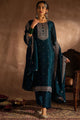 Teal & gold-toned embroidered Kurta with Trousers with dupatta