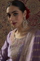 Lavender, gold and pink embroidered kurta with trousers & dupatta