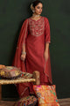 Dhiyona IE Ethnic Motifs Embroidered Thread Work Straight Kurta With Trousers & Dupatta