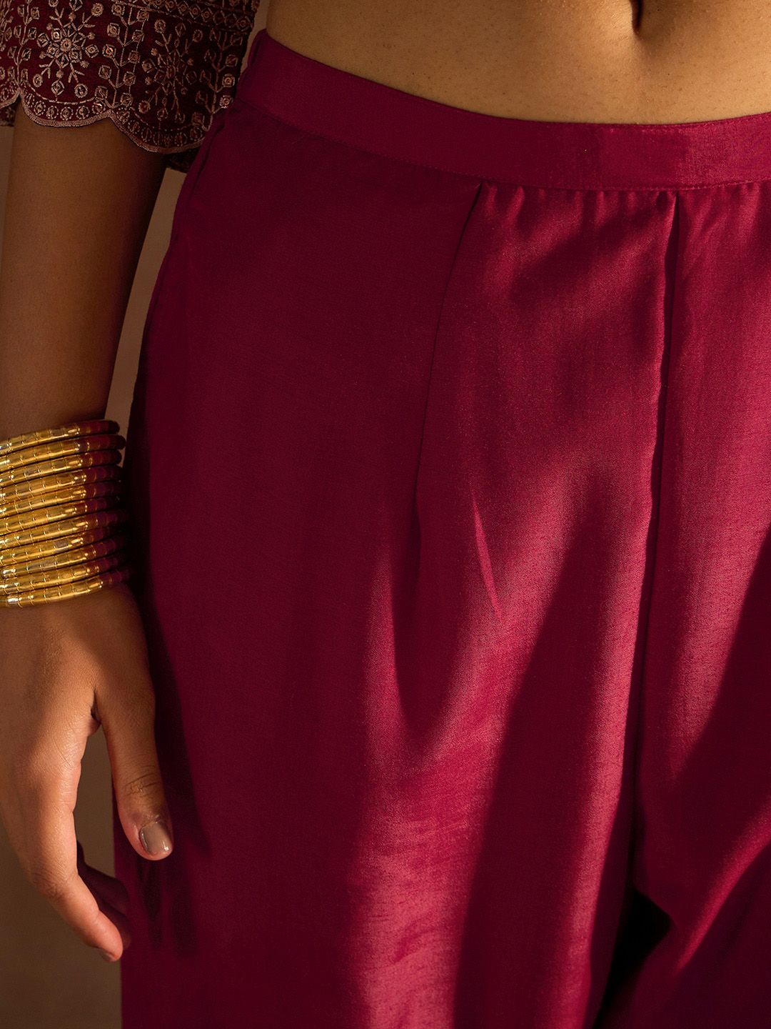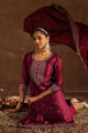 Maroon & gold toned embroidered Kurta with Trousers with dupatta