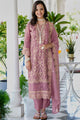 Mauve and gold toned embroidered kurta with trousers and dupatta