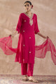 Pink and gold-toned embroidered Kurta with Trousers with dupatta