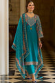 Teal, pink and gold-toned embroidered Kurta with Trousers with dupatta