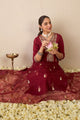 Maroon, red and gold toned embroidered kurta with trousers and dupatta